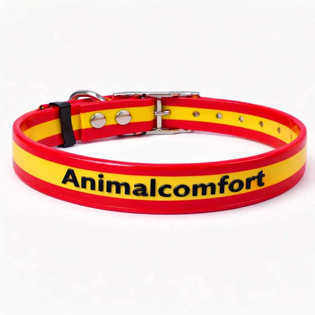 Collares de poliuretano personalizados con grabado muy resistente en 3D y fondo de bandera España o Andalucía