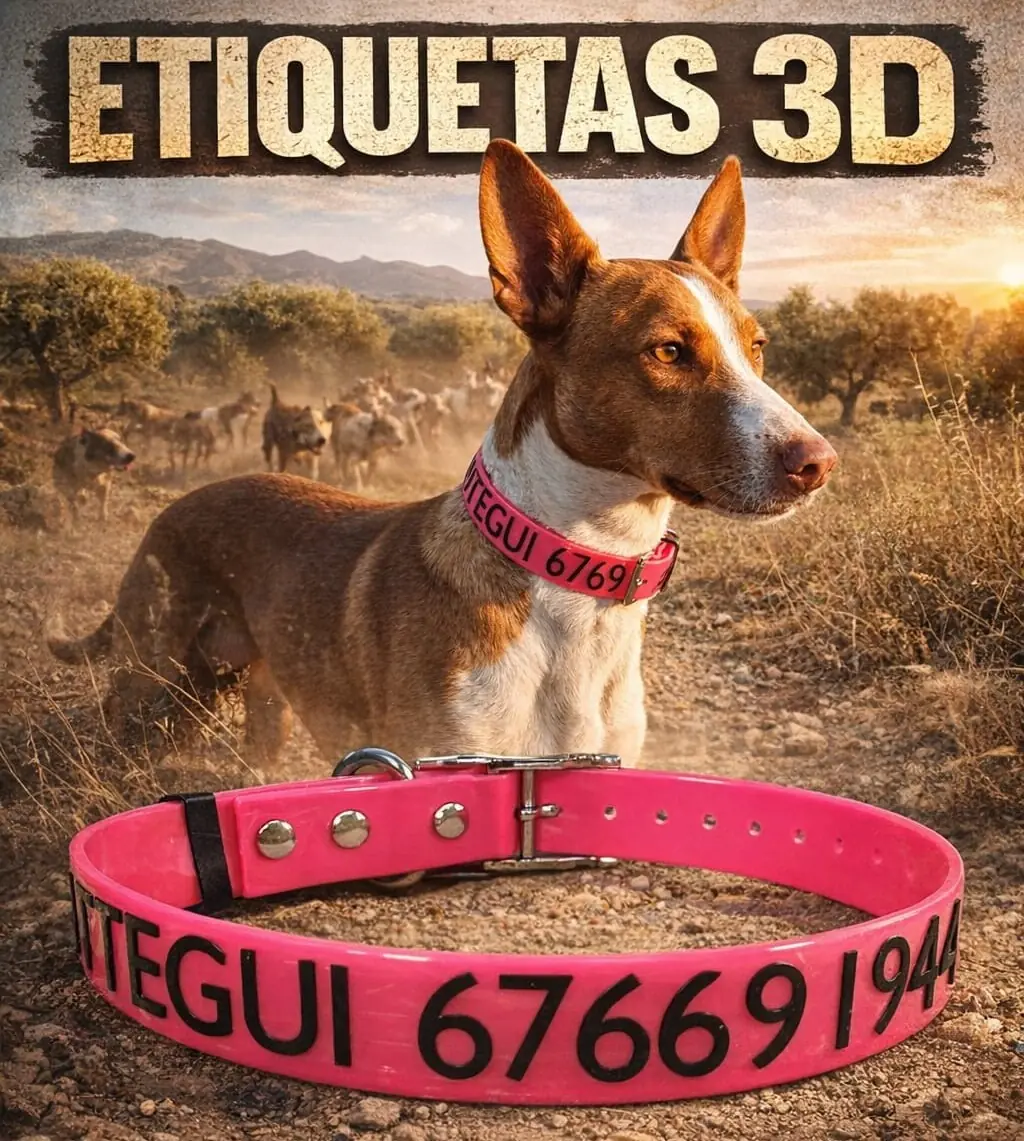 - Define el diseño: Indica el texto, color y medidas según la especie, ya sean perros de compañía o ejemplares de rehalas.